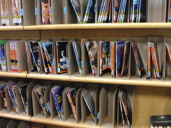 The shelves are chock-a-block full during vacation periods and nearly decimated during the school term. One copy of each title can’t circulate, and that’s basically what is left on the shelves.